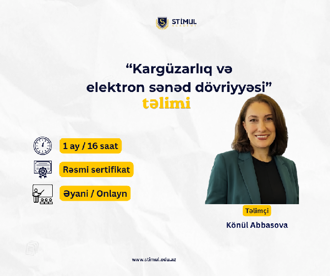Hörmətli STİMUL komandası! Mən Mühasibatlıq təlimini uğurla bitirdim. Çox maraqlı bir təlim idi. Xüsusi ilə İlahə müəlliməyə təşəkkürümü bildirmək istərdim. Dərslər...
