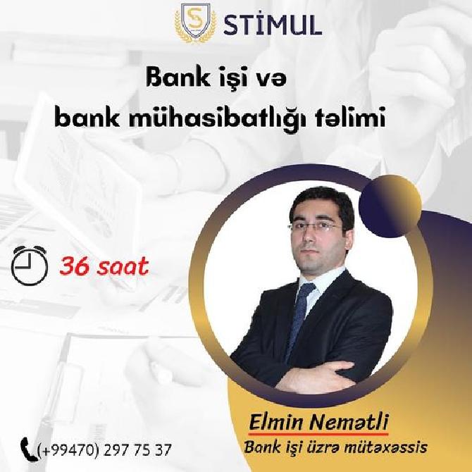 Təlimçi: Elmin Nemətli (bank işi üzrə mütəxəssis, 15 ildən çox iş təcrübəsi var) haqqında məlumat almaq üçün linkə daxil olun: https://stimul.edu.az/az/view/406/14/Elmin-Nemetli