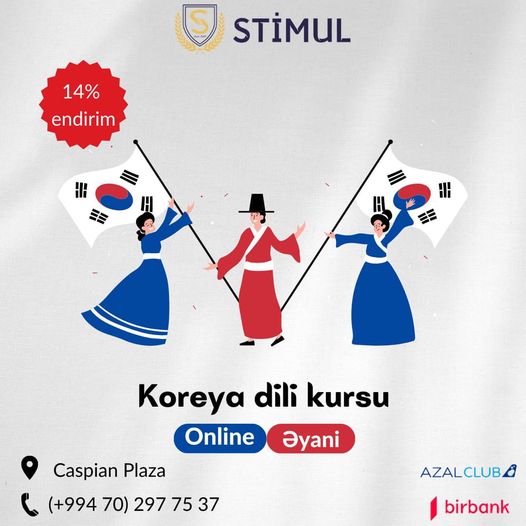 Koreya dili (한국어, 조선어) kurslarımıza qəbul il boyu davam edir. Koreyada ödənişsiz ali təhsil almaq və ya işləmək istəyənlər, həmçinin bu dili öyrənməyi arzulayanlar müraciət edə bilərlər.