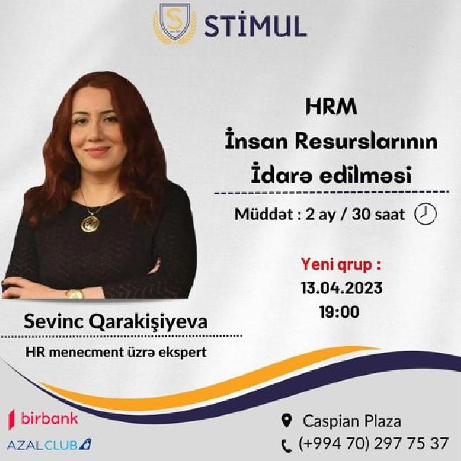 "HRM - İnsan Resurslarının İdarə edilməsi" təliminə növbəti qəbul elan edirik. Yeni qrupun dərsləri 13 aprel, saat 19:00-da başlayacaq.