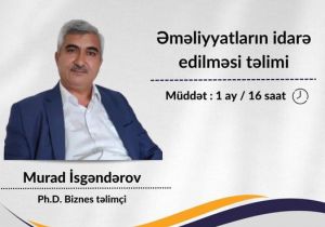 Təlimçi 20 ilə yaxın iş təcrübəsinə malik olan, iqtisadiyyat üzrə elmlər doktoru, dosent, biznes təlimçi Murad İsgəndərlidir.