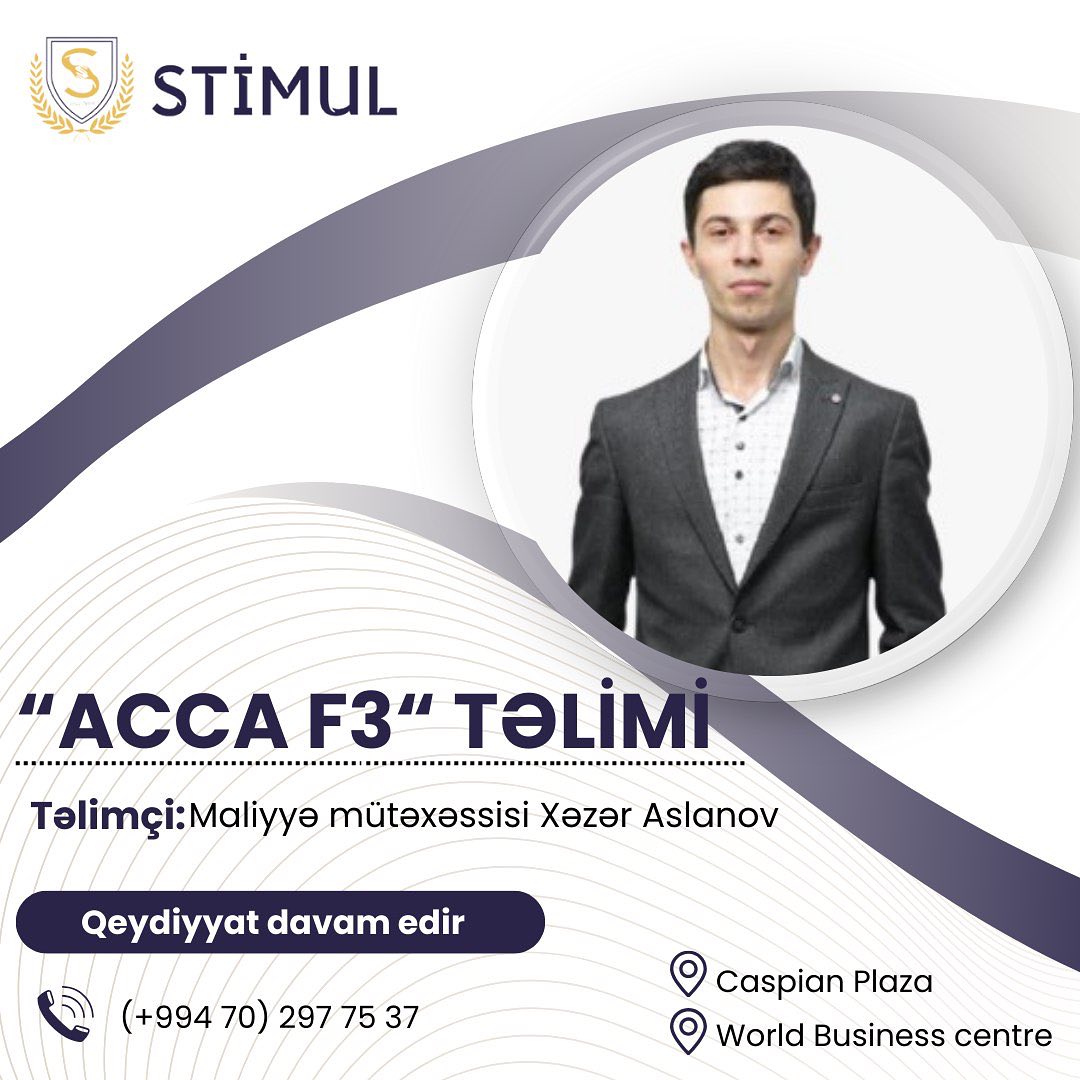 ACCA F3 - Financial Accounting (Maliyyə Uçotu) təliminə, 11 may, saat 19:30-da başlayacaq yeni qrupa qəbul davam edir.