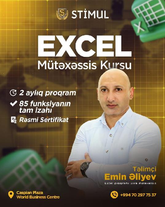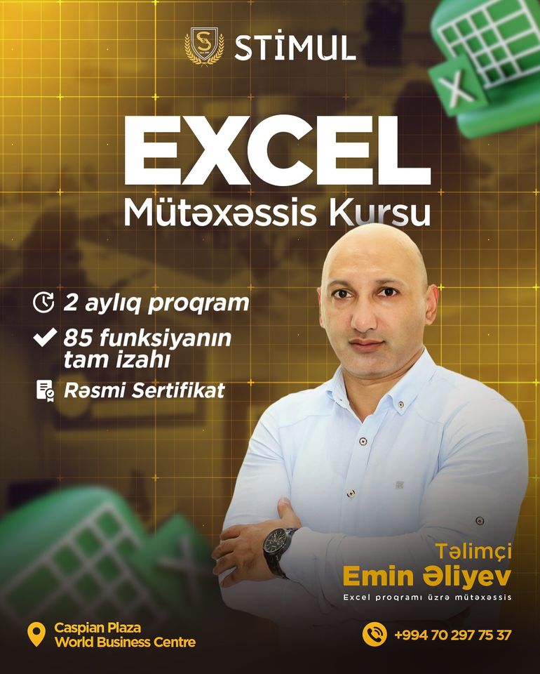 Excel proqramının sirrlərini illərin təcrübəli Excel mütəxəssisi olan Emin Əliyevdən öyrənməyə dəvət edirik.