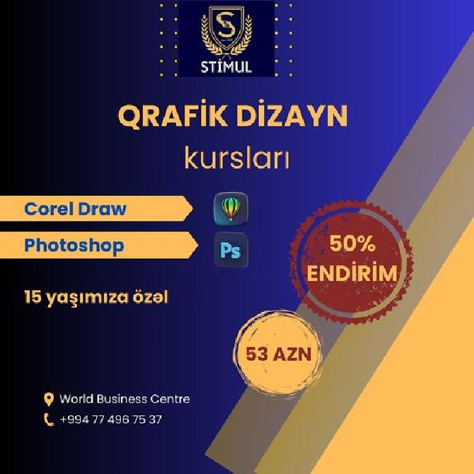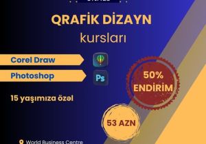 Endirimli Qrafik Dizayn paketinə Photoshop və Corel Draw proqramları daxildir. 50% Endirim 28 May metrosu yaxınlığında yerləşən World Business Centre ofisimizdə keçərlidir.