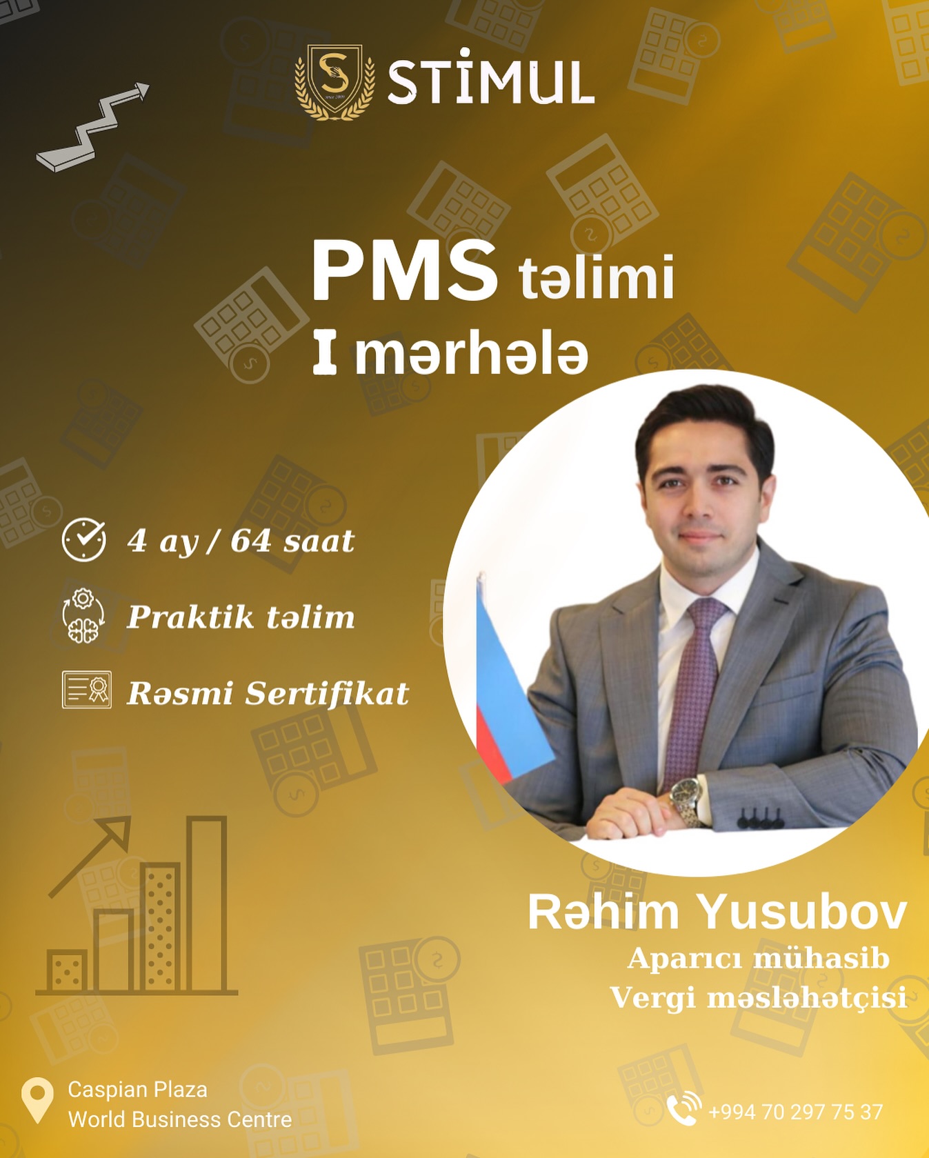 “PMS-I mərhələ” imtahanına hazırlıq həftədə 2 dəfə hər dərs 2 saat olmaqla, aparıcı mühasib və vergi məsləhətçisi Rəhim Yusubov tərəfindən tədris olunacaq.