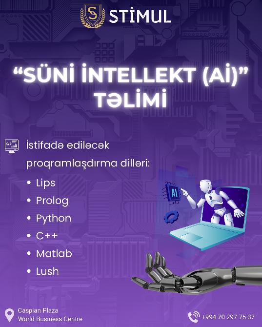 “Süni İntellekt” - “Artificial Intelligence” təlimində iştirak edərək Lisp, Prolog, Python, C++, Matlab və Lush proqramlaşdırma dillərini öyrənmiş olacaqsınız. Müxtəlif qabiliyyətlərə sahib Süni İntellekt proqramlaşdırmağı öyrənəcək və bu sahədə biliklərinizi inkişaf etdirəcəksiniz.